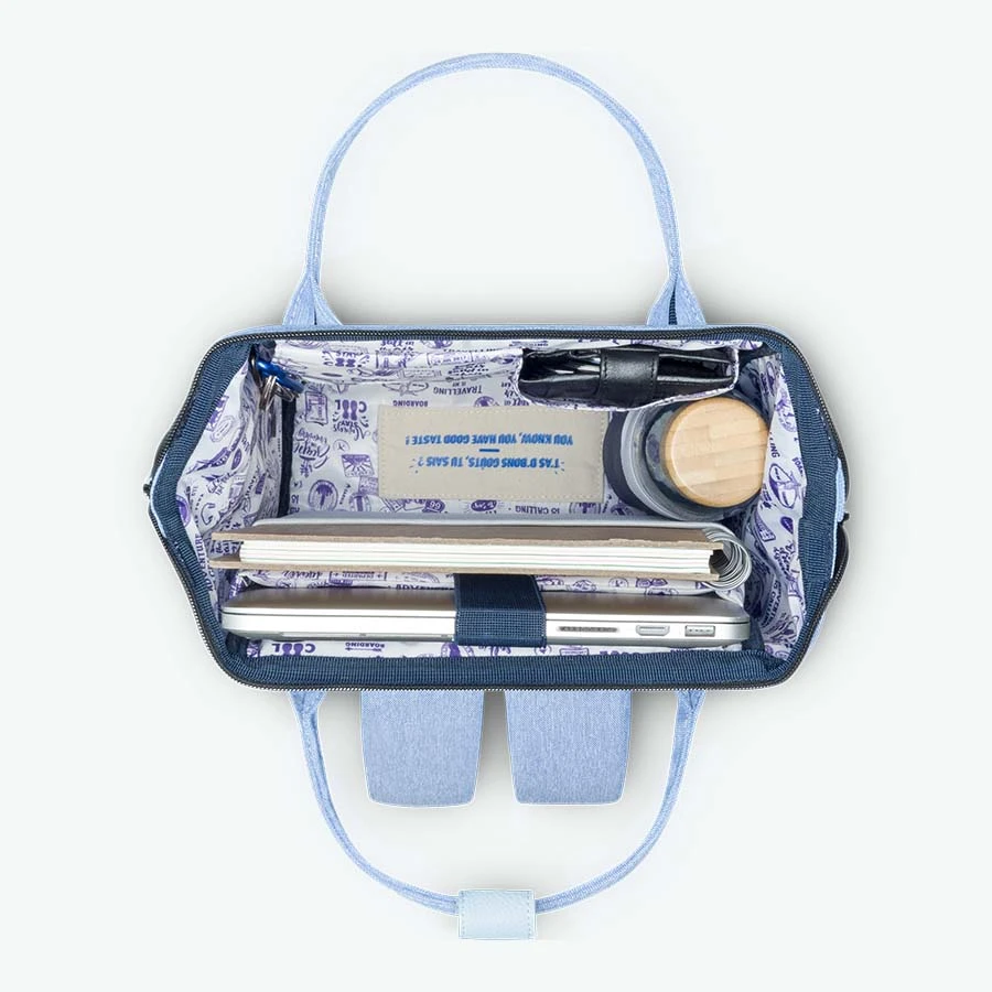 Ce sac est accompagné de 2 poches interchangeables : bleu chiné (Mezzavia) + Bleu motif fleurs (Capo di Feno)