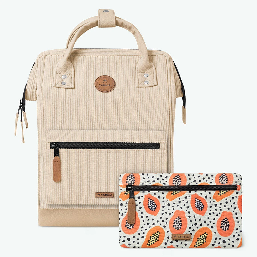 Ce sac est accompagné des pochettes interchangeables : beige unie (Montrose) + beige à motifs (Same Houston)